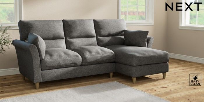7.2.10 Hartley Highback Relaxed Sit Medium Sofa Chaise - Right Hand Tweedy Blend Easy Clean Dark Grey Low Conical - Light | Made Click here to use our website with more accessibility support, for example screen readers