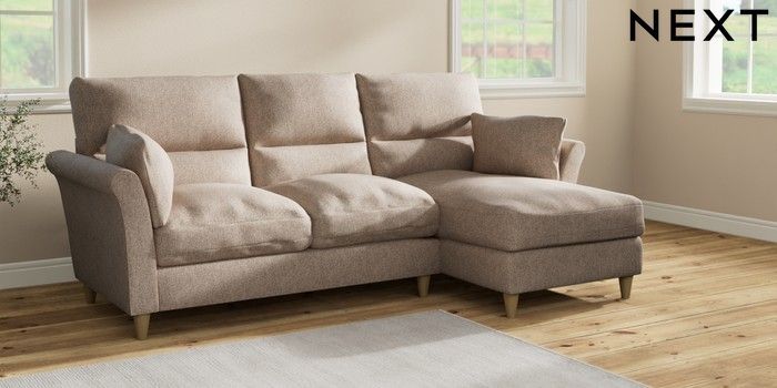 7.2.10 Hartley Highback Relaxed Sit Medium Sofa Chaise - Right Hand Tweedy Chenille Mid Natural Low Conical - Light | Made Click here to use our website with more accessibility support, for example screen readers