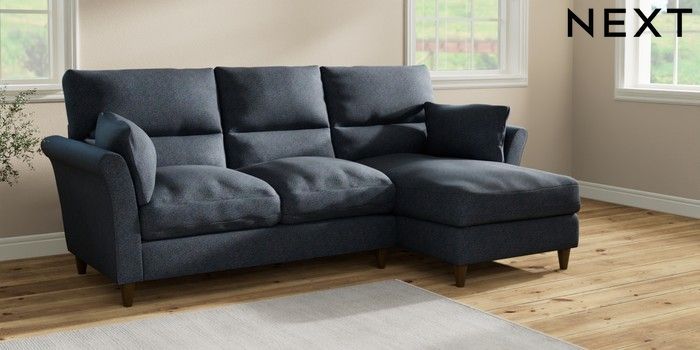 7.2.10 Hartley Highback Relaxed Sit Medium Sofa Chaise - Right Hand Tweedy Chenille Navy Blue Low Conical - Mid | Made Click here to use our website with more accessibility support, for example screen readers