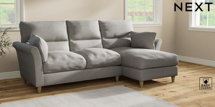 7.2.10 Hartley Highback Relaxed Sit Medium Sofa Chaise - Right Hand Woven Chenille Easy Clean Light Grey Low Conical - Light | Made Click here to use our website with more accessibility support, for example screen readers