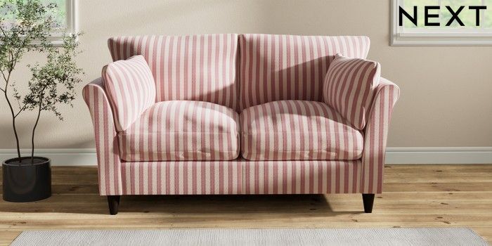 7.2.10 Hartley Relaxed Sit 2 Seater Sofa Bold Chenille Stripe Dark Pink Low Conical - Dark | Made Click here to use our website with more accessibility support, for example screen readers