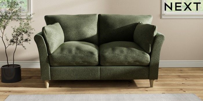 7.2.10 Hartley Relaxed Sit 2 Seater Sofa Boucle Chenille Dark Moss Green Low Conical - Light | Made Click here to use our website with more accessibility support, for example screen readers