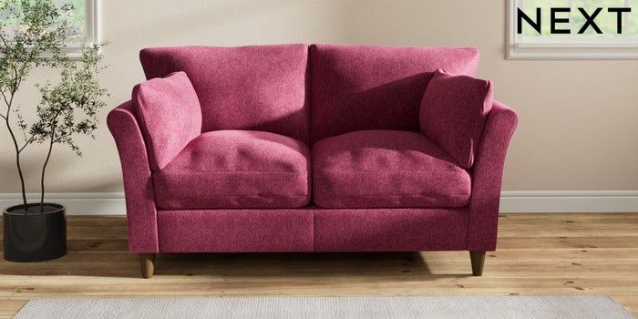 7.2.10 Hartley Relaxed Sit 2 Seater Sofa Cotswold Chenille Dark Raspberry Pink Low Conical - Mid | Made Click here to use our website with more accessibility support, for example screen readers