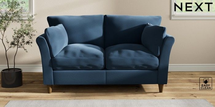 7.2.10 Hartley Relaxed Sit 2 Seater Sofa Plush Velvet Easy Clean Airforce Blue Low Conical - Mid | Made Click here to use our website with more accessibility support, for example screen readers