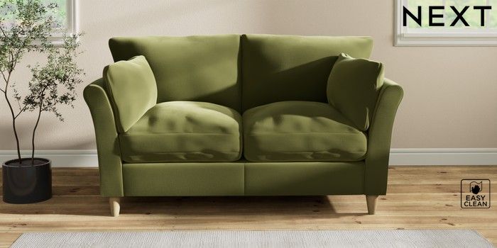 7.2.10 Hartley Relaxed Sit 2 Seater Sofa Plush Velvet Easy Clean Mid Olive Green Low Conical - Light | Made Click here to use our website with more accessibility support, for example screen readers