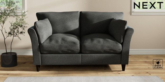 7.2.10 Hartley Relaxed Sit 2 Seater Sofa Tweedy Blend Easy Clean Charcoal Grey Low Conical - Dark | Made Click here to use our website with more accessibility support, for example screen readers