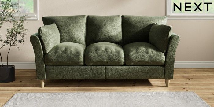 7.2.10 Hartley Relaxed Sit 3 Cushion 3 Seater Sofa Boucle Chenille Dark Moss Green Low Conical - Light | Made Click here to use our website with more accessibility support, for example screen readers