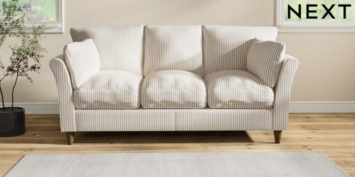 7.2.10 Hartley Relaxed Sit 3 Cushion 3 Seater Sofa Chenille Stripe Natural Low Conical - Mid | Made Click here to use our website with more accessibility support, for example screen readers