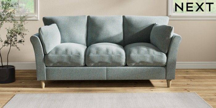 7.2.10 Hartley Relaxed Sit 3 Cushion 3 Seater Sofa Chunky Marl Mid Blue Low Conical - Light | Made Click here to use our website with more accessibility support, for example screen readers