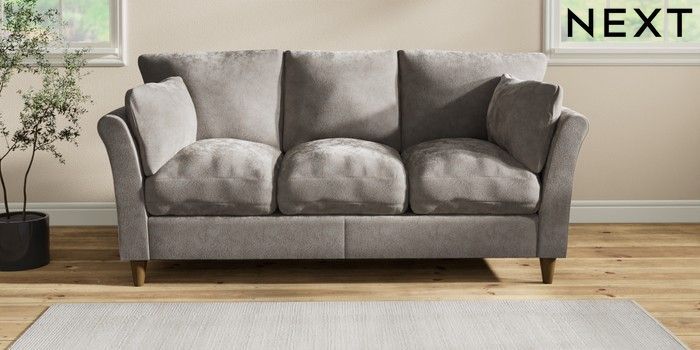 7.2.10 Hartley Relaxed Sit 3 Cushion 3 Seater Sofa Distressed Velour French Grey Low Conical - Mid | Made Click here to use our website with more accessibility support, for example screen readers
