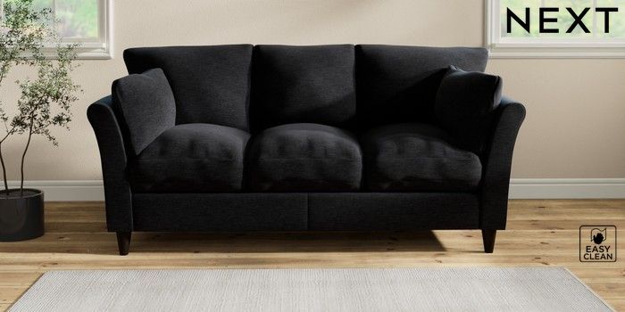 7.2.10 Hartley Relaxed Sit 3 Cushion 3 Seater Sofa Fine Chenille Easy Clean Black Low Conical - Dark | Made Click here to use our website with more accessibility support, for example screen readers