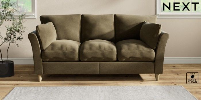 7.2.10 Hartley Relaxed Sit 3 Cushion 3 Seater Sofa Fine Chenille Easy Clean Dark Moss Green Low Conical - Light | Made Click here to use our website with more accessibility support, for example screen readers