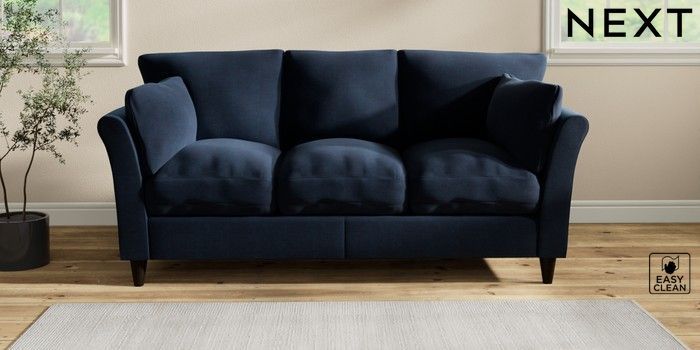 7.2.10 Hartley Relaxed Sit 3 Cushion 3 Seater Sofa Fine Chenille Easy Clean Dark Navy Blue Low Conical - Dark | Made Click here to use our website with more accessibility support, for example screen readers