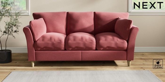 7.2.10 Hartley Relaxed Sit 3 Cushion 3 Seater Sofa Fine Chenille Easy Clean Mid Pink Low Conical - Light | Made Click here to use our website with more accessibility support, for example screen readers