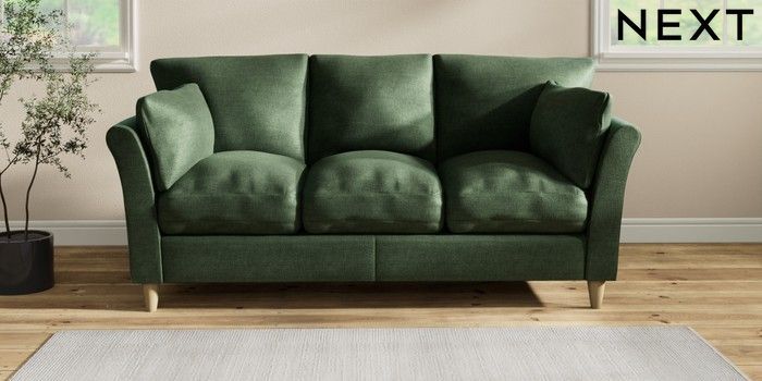 7.2.10 Hartley Relaxed Sit 3 Cushion 3 Seater Sofa Luxe Chenille Dark Green Low Conical - Light | Made Click here to use our website with more accessibility support, for example screen readers