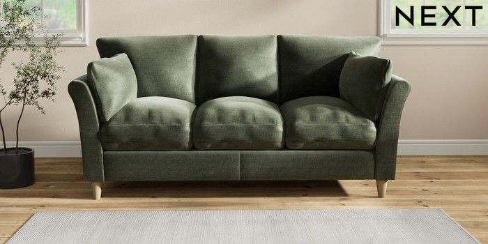 7.2.10 Hartley Relaxed Sit 3 Cushion 3 Seater Sofa Luxe Chenille Mid Green Low Conical - Light | Made Click here to use our website with more accessibility support, for example screen readers