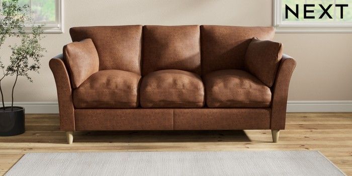 7.2.10 Hartley Relaxed Sit 3 Cushion 3 Seater Sofa Monza Faux Leather Easy Clean Chestnut Brown Low Conical - Light | Made Click here to use our website with more accessibility support, for example screen readers