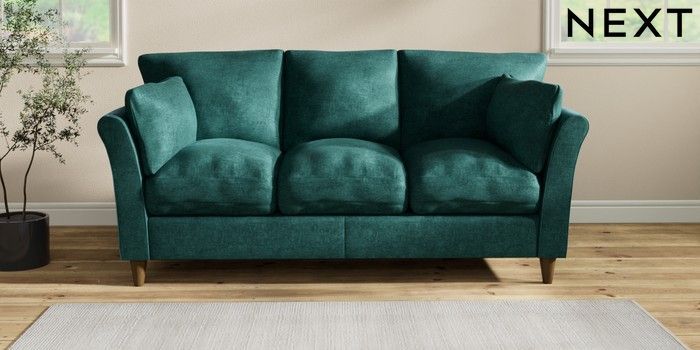 7.2.10 Hartley Relaxed Sit 3 Cushion 3 Seater Sofa Plush Chenille Dark Teal Green Low Conical - Mid | Made Click here to use our website with more accessibility support, for example screen readers