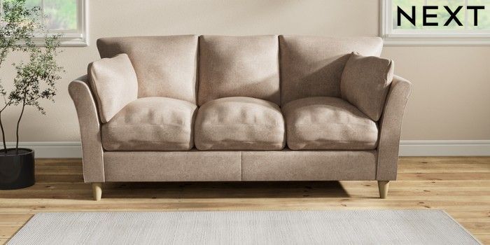 7.2.10 Hartley Relaxed Sit 3 Cushion 3 Seater Sofa Plush Chenille Mid Natural Low Conical - Light | Made Click here to use our website with more accessibility support, for example screen readers
