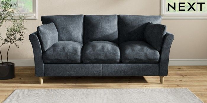 7.2.10 Hartley Relaxed Sit 3 Cushion 3 Seater Sofa Plush Chenille Slate Blue Low Conical - Light | Made Click here to use our website with more accessibility support, for example screen readers