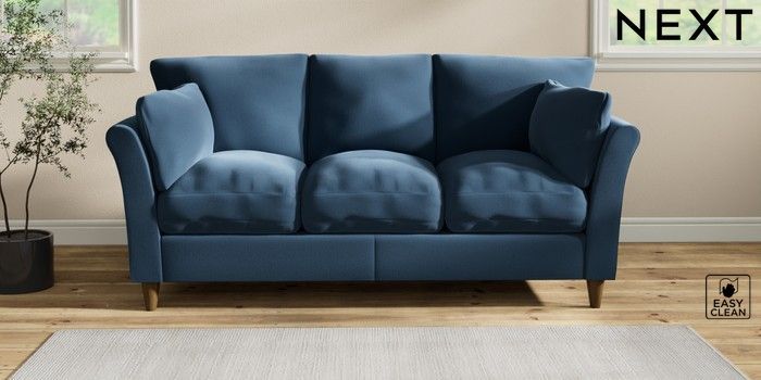 7.2.10 Hartley Relaxed Sit 3 Cushion 3 Seater Sofa Plush Velvet Easy Clean Airforce Blue Low Conical - Mid | Made Click here to use our website with more accessibility support, for example screen readers