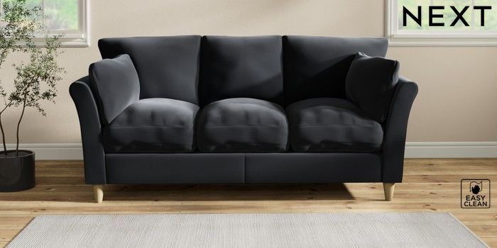 7.2.10 Hartley Relaxed Sit 3 Cushion 3 Seater Sofa Plush Velvet Easy Clean Charcoal Grey Low Conical - Light | Made Click here to use our website with more accessibility support, for example screen readers