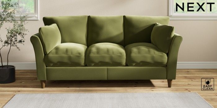7.2.10 Hartley Relaxed Sit 3 Cushion 3 Seater Sofa Plush Velvet Easy Clean Mid Olive Green Low Conical - Mid | Made Click here to use our website with more accessibility support, for example screen readers