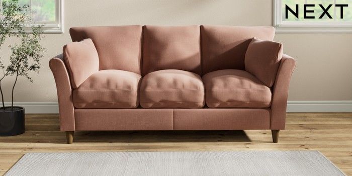 7.2.10 Hartley Relaxed Sit 3 Cushion 3 Seater Sofa Relaxed Linen Look Light Rust Brown Low Conical - Mid | Made Click here to use our website with more accessibility support, for example screen readers