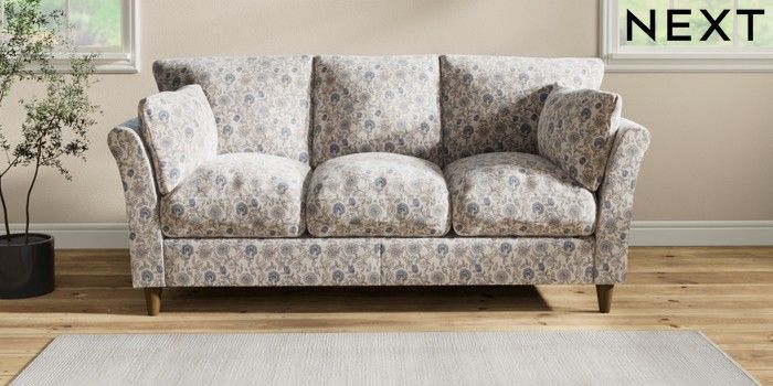 7.2.10 Hartley Relaxed Sit 3 Cushion 3 Seater Sofa Relaxed Linen Look Print Woodblock Floral Blue Low Conical - Mid | Made Click here to use our website with more accessibility support, for example screen readers