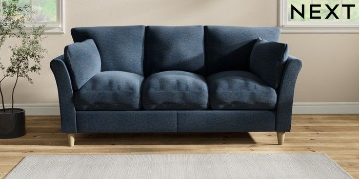 7.2.10 Hartley Relaxed Sit 3 Cushion 3 Seater Sofa Ripple Chenille Dark Blue Low Conical - Light | Made Click here to use our website with more accessibility support, for example screen readers