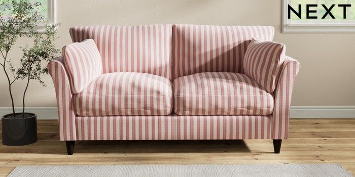 7.2.10 Hartley Relaxed Sit 3 Seater Small Sofa Bold Chenille Stripe Dark Pink Low Conical - Dark | Made Click here to use our website with more accessibility support, for example screen readers