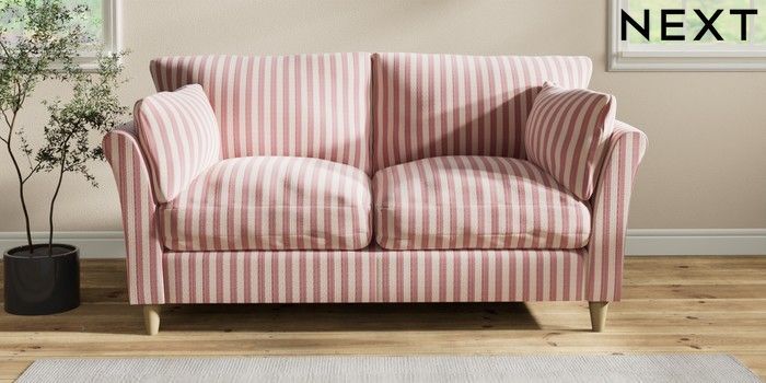7.2.10 Hartley Relaxed Sit 3 Seater Small Sofa Bold Chenille Stripe Dark Pink Low Conical - Light | Made Click here to use our website with more accessibility support, for example screen readers
