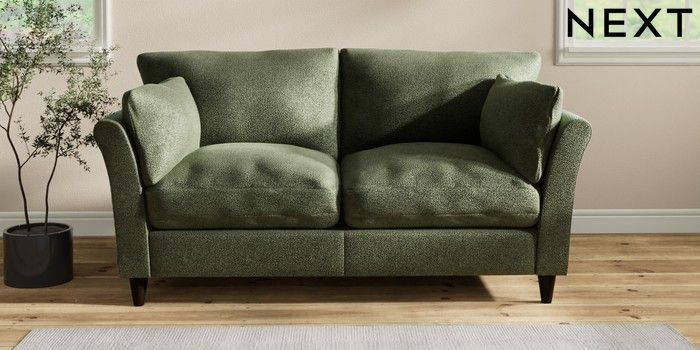 7.2.10 Hartley Relaxed Sit 3 Seater Small Sofa Boucle Chenille Dark Moss Green Low Conical - Dark | Made Click here to use our website with more accessibility support, for example screen readers