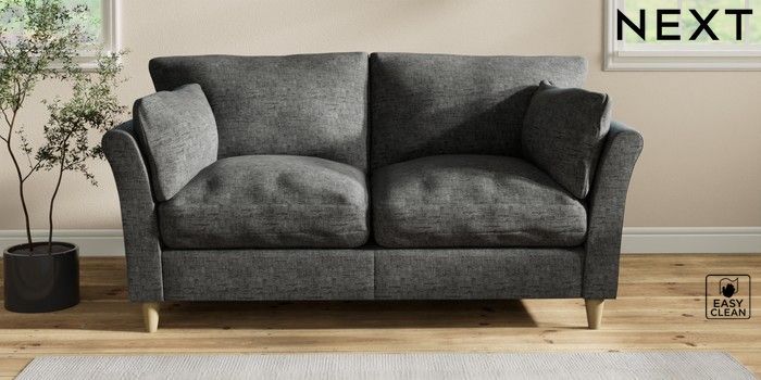 7.2.10 Hartley Relaxed Sit 3 Seater Small Sofa Boucle Weave Easy Clean Charcoal Grey Low Conical - Light | Made Click here to use our website with more accessibility support, for example screen readers