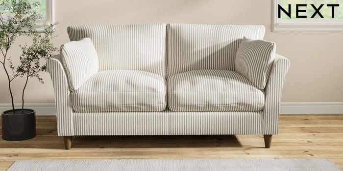 7.2.10 Hartley Relaxed Sit 3 Seater Small Sofa Chenille Stripe Moss Green Low Conical - Mid | Made Click here to use our website with more accessibility support, for example screen readers