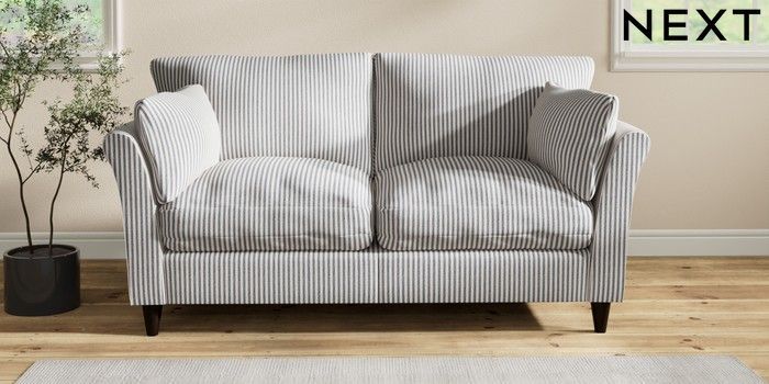 7.2.10 Hartley Relaxed Sit 3 Seater Small Sofa Chenille Stripe Slate Blue Low Conical - Dark | Made Click here to use our website with more accessibility support, for example screen readers