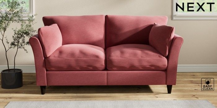 7.2.10 Hartley Relaxed Sit 3 Seater Small Sofa Fine Chenille Easy Clean Mid Pink Low Conical - Dark | Made Click here to use our website with more accessibility support, for example screen readers