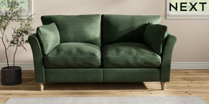 7.2.10 Hartley Relaxed Sit 3 Seater Small Sofa Luxe Chenille Dark Green Low Conical - Light | Made Click here to use our website with more accessibility support, for example screen readers