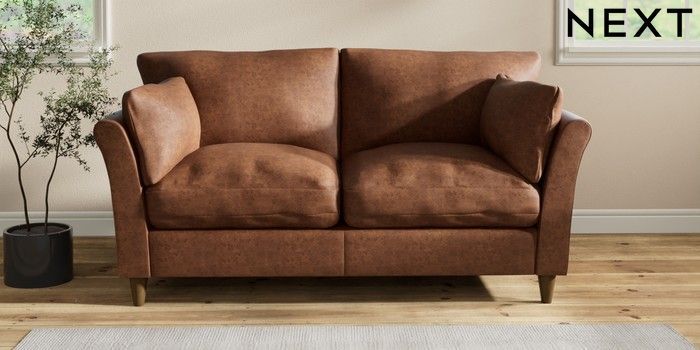 7.2.10 Hartley Relaxed Sit 3 Seater Small Sofa Monza Faux Leather Easy Clean Chestnut Brown Low Conical - Mid | Made Click here to use our website with more accessibility support, for example screen readers