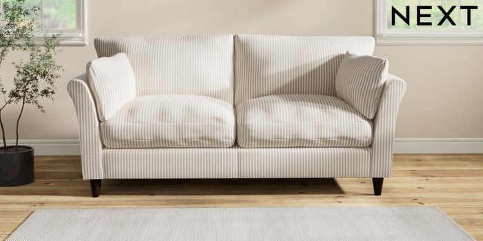 7.2.10 Hartley Relaxed Sit 3 Seater Sofa Chenille Stripe Natural Low Conical - Dark | Made Click here to use our website with more accessibility support, for example screen readers