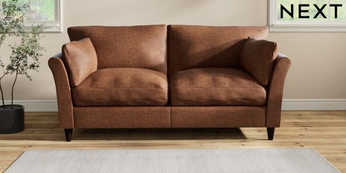 7.2.10 Hartley Relaxed Sit 3 Seater Sofa Monza Faux Leather Easy Clean Chestnut Brown Low Conical - Dark | Made Click here to use our website with more accessibility support, for example screen readers