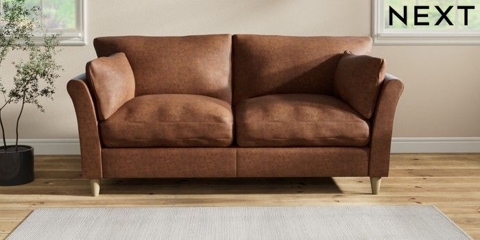 7.2.10 Hartley Relaxed Sit 3 Seater Sofa Monza Faux Leather Easy Clean Chestnut Brown Low Conical - Light | Made Click here to use our website with more accessibility support, for example screen readers