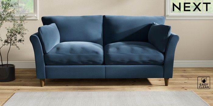 7.2.10 Hartley Relaxed Sit 3 Seater Sofa Plush Velvet Easy Clean Airforce Blue Low Conical - Mid | Made Click here to use our website with more accessibility support, for example screen readers