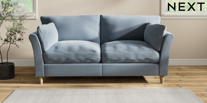 7.2.10 Hartley Relaxed Sit 3 Seater Sofa Relaxed Linen Look Mid Blue Low Conical - Light | Made Click here to use our website with more accessibility support, for example screen readers