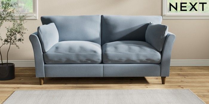 7.2.10 Hartley Relaxed Sit 3 Seater Sofa Relaxed Linen Look Mid Blue Low Conical - Mid | Made Click here to use our website with more accessibility support, for example screen readers