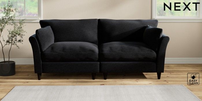 7.2.10 Hartley Relaxed Sit 4 Seater Sofa Fine Chenille Easy Clean Black Low Conical - Dark | Made Click here to use our website with more accessibility support, for example screen readers