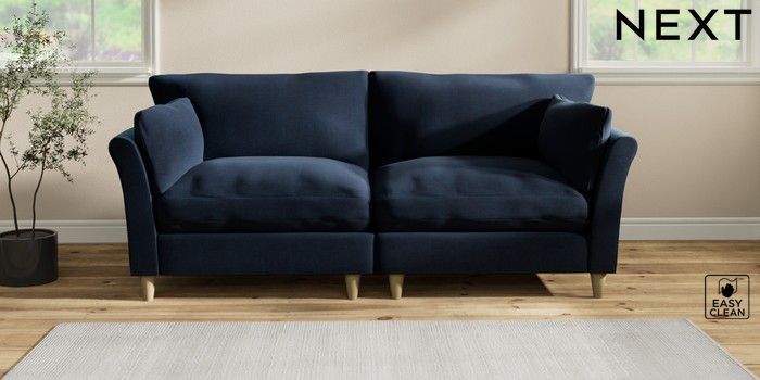 7.2.10 Hartley Relaxed Sit 4 Seater Sofa Fine Chenille Easy Clean Dark Navy Blue Low Conical - Light | Made Click here to use our website with more accessibility support, for example screen readers