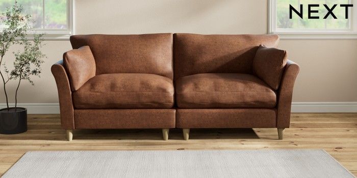7.2.10 Hartley Relaxed Sit 4 Seater Sofa Monza Faux Leather Easy Clean Chestnut Brown Low Conical - Light | Made Click here to use our website with more accessibility support, for example screen readers