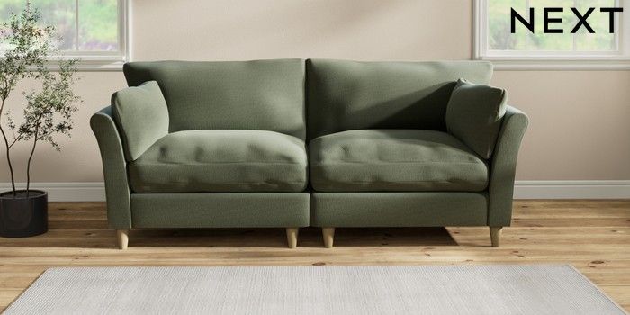 7.2.10 Hartley Relaxed Sit 4 Seater Sofa Relaxed Linen Look Dark Green Low Conical - Light | Made Click here to use our website with more accessibility support, for example screen readers