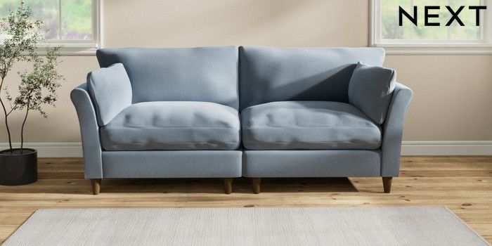 7.2.10 Hartley Relaxed Sit 4 Seater Sofa Relaxed Linen Look Mid Blue Low Conical - Mid | Made Click here to use our website with more accessibility support, for example screen readers